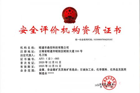 2003年11月10日,昭通市鼎安科技有限公司成立,初始主要從事第三方安全工程技術服務,經(jīng)多年運營,發(fā)展為多專業(yè)綜合科技平臺,為社會提供多種專業(yè)技術服務工作。 現(xiàn)公司注冊資金為1200萬元,公司法定代表人:毛衛(wèi)旭。公司主要業(yè)務:安全評價、安全標準化評審、安全工程技術服務;環(huán)境監(jiān)測、職業(yè)衛(wèi)生檢測、檢驗;法律訴訟及非訴訟服務;司法鑒定、固定資產(chǎn)投資項目節(jié)能服務;工程咨詢;工程測量測繪;安全教育培訓等。是安全生產(chǎn)服務、安全教育培訓機構,也是環(huán)境監(jiān)測和職業(yè)衛(wèi)生服務機構,同時也是綜合的檢測檢驗、綜合科技平臺服務機構。多年來為公、檢、法、司、軍、警、海關、仲裁、安監(jiān)、工礦商貿(mào)企業(yè)、社會團體及個人提供多專業(yè)技術服務。